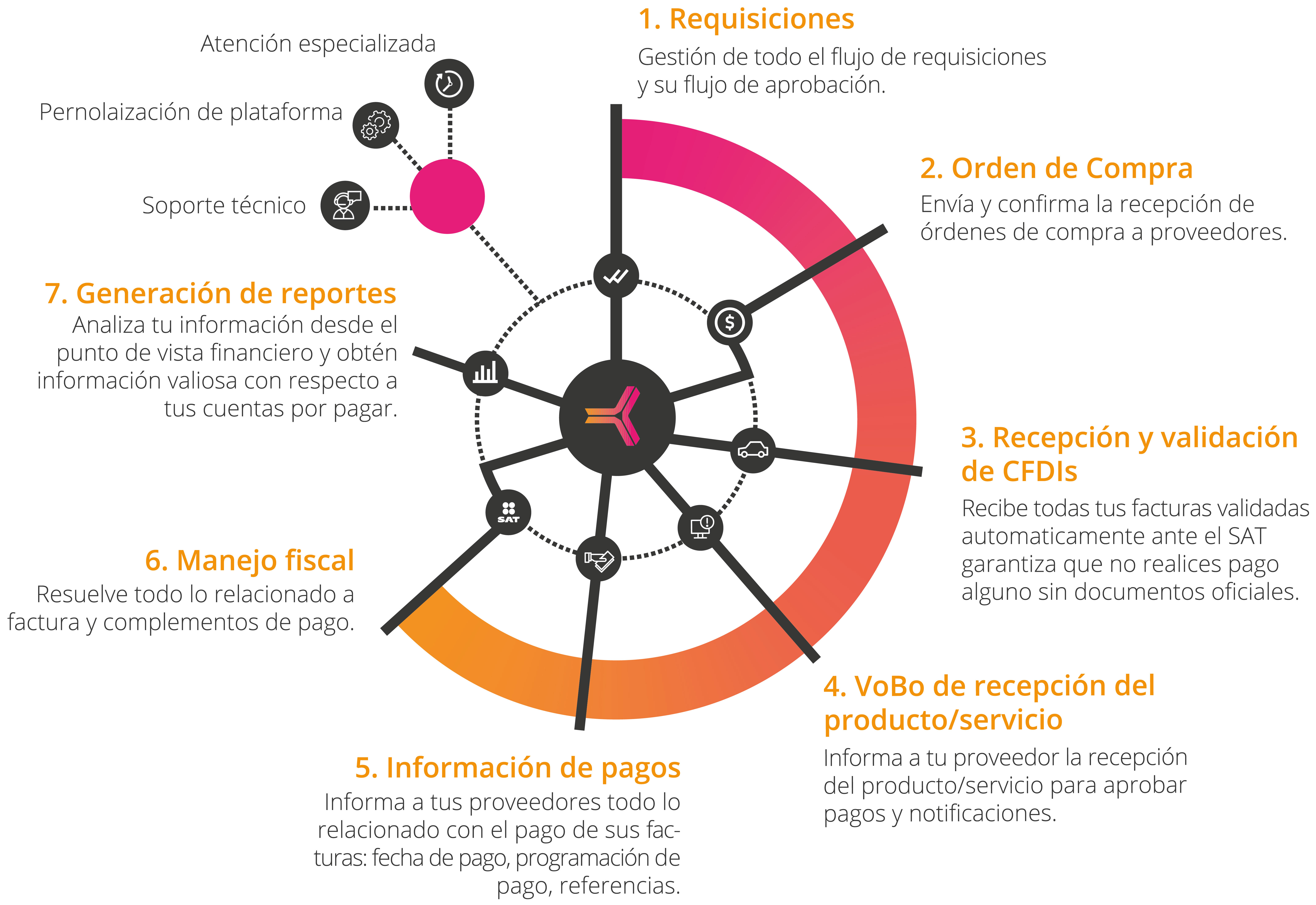 Es una plataforma en la nube que te permitirá estandarizar, controlar, automatizar y generar trazabilidad en cada uno de los pasos del proceso de compras.
